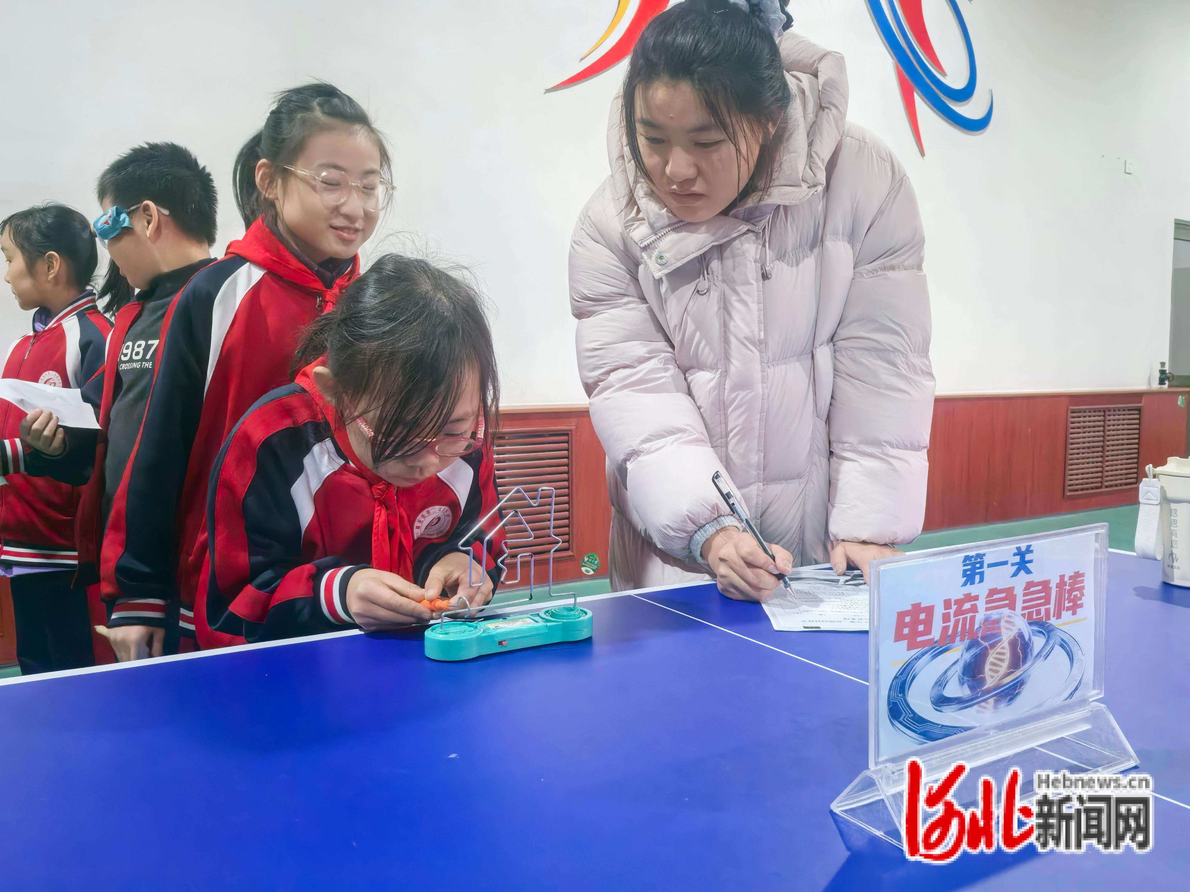 在“科技我来闯”趣味挑战赛中,52名选手同台竞技,闯过电流急急棒、巧夹弹珠、冰壶、翻山越岭、伯努利浮球五大关卡,紧张刺激。“纸船承重赛”的选手们在限定时间内用A4纸现场折叠,通过精妙的结构设计,使纸船能承载更多重量。“扑克牌搭高赛”,队员在无黏胶、无支撑的情况下,仅凭扑克牌的相互作用力搭建高塔,增强了团队凝聚力与沟通协作意识。