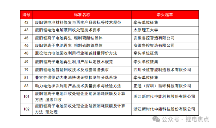 关于征集《废旧锂离子电池再生粗制硫酸钴晶体》等11项电池回收利用标准起草单位的通知: