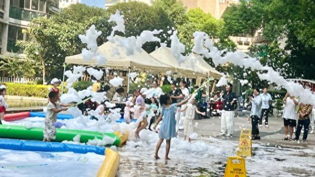“在水里玩我觉得好开心,还有泡泡机可以喷出好多泡泡,又好看又好玩!”一位6岁的小朋友兴奋地分享体会。陪同孙子前来参加活动的李阿姨也说:“现在正好放暑假,孩子总待在家里难免无聊,这么有趣的活动让大家一起参与,真的特别好。”